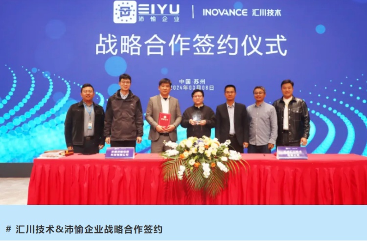 3月8日,匯川技術與安徽沛愉企業集團(以下簡稱“沛愉企業”)正式簽署戰略合作協議,雙方將共同致力于推動包裝機械自動化領域的發展與創新。匯川技術通用事業部先進SBU總監申平煜、沛愉企業董事長彭躍猛出席簽約活動。