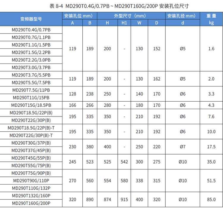 MD290-2T3.7G/5.5PB匯川變頻器三相220V 3.7KW